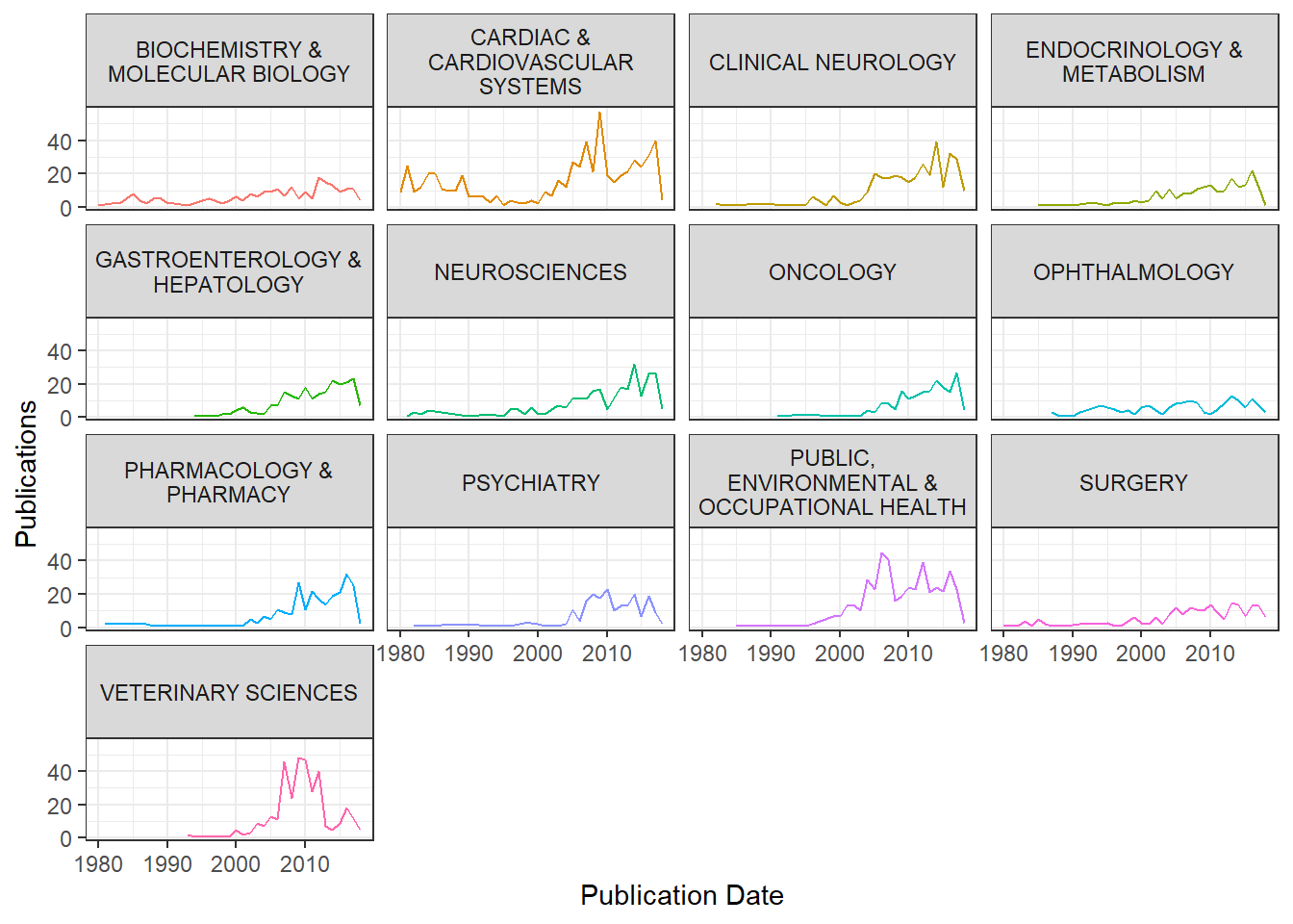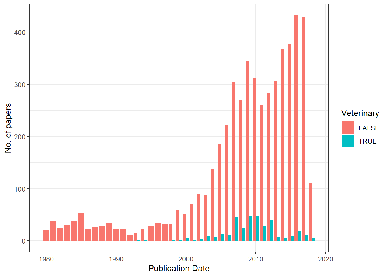 Here is a plot with veterinary sciences separated from the rest of the papers: