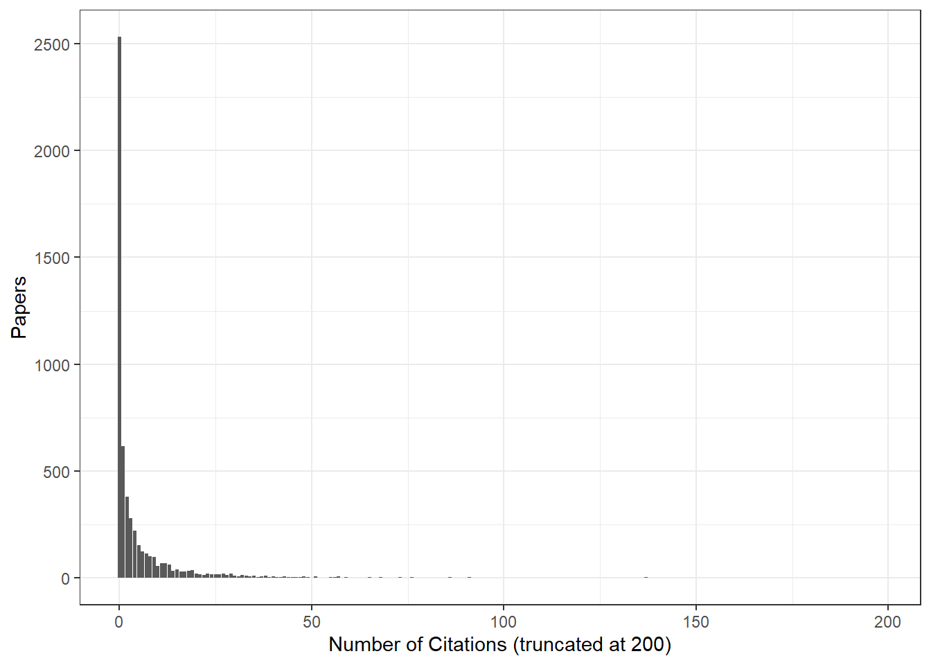 First, it’s interesting to note that almost half (45.32%) of all research papers do not get cited at all: